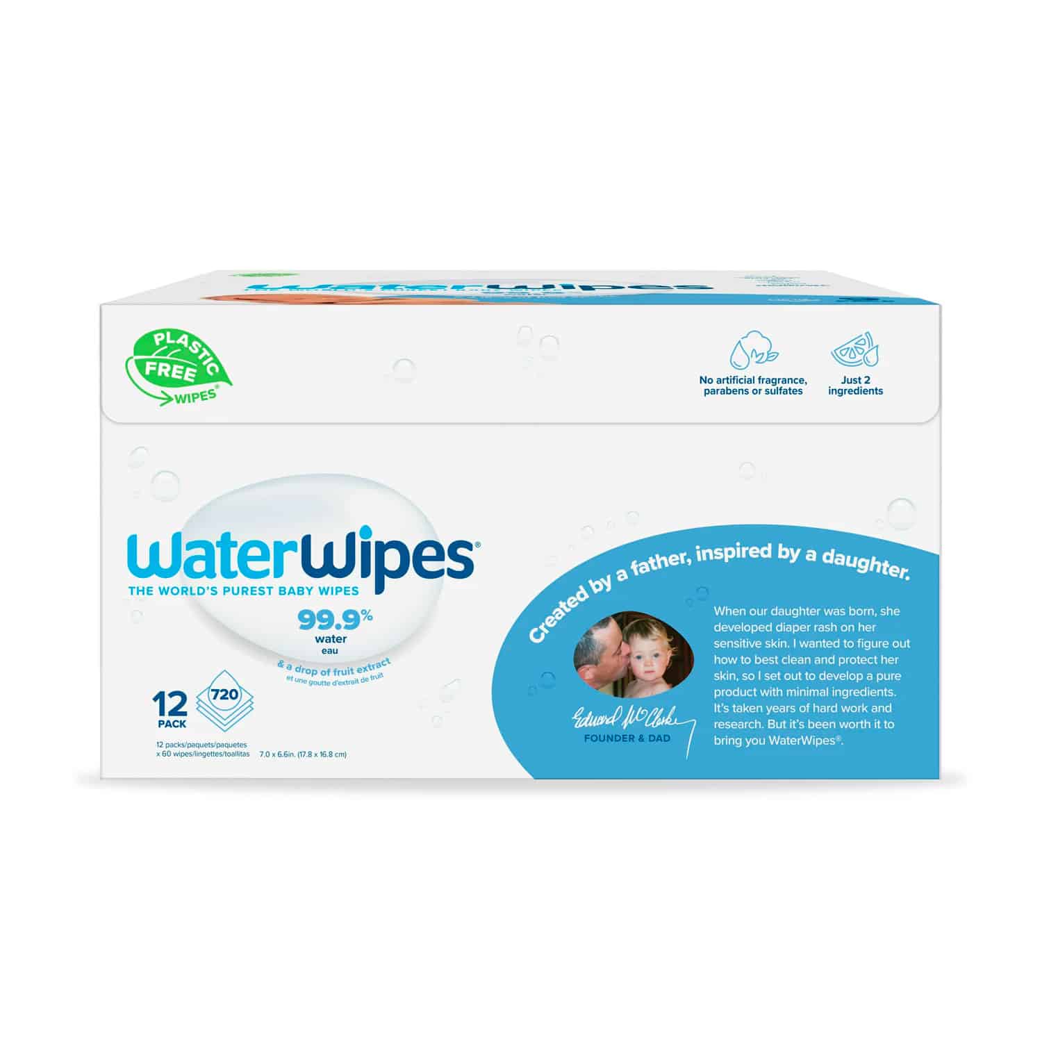 3 reviews for WaterWipes Plastic-Free Original Baby Wipes, 99.9% Water Based Wipes, Unscented & Hypoallergenic for Sensitive Skin, 720 Count (12 Packs)